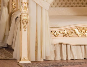 It is a hand made bed of 107 Kg of solid, 24 carat gold, and also used other decrative applications.The best quality Ash wood is used to made this bed, That's not enough, A fabric of fine Italian Silk and headboard is decorated with diamonds and also mant other precious stones.