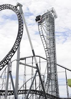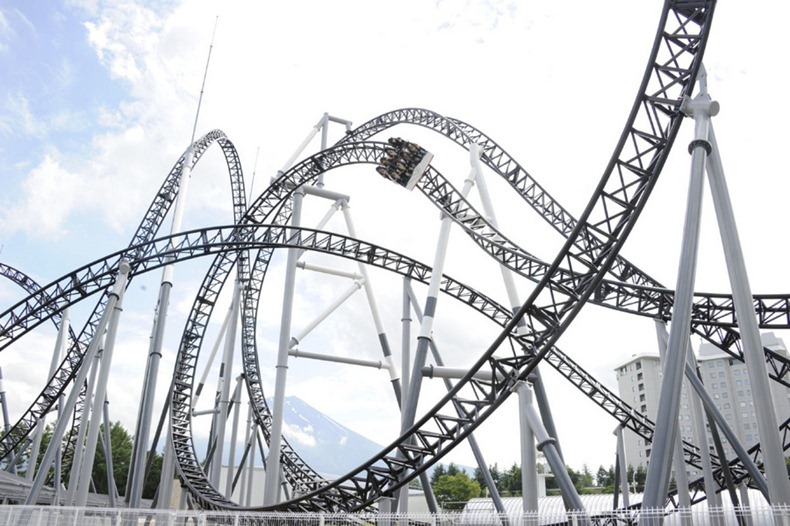 Roller Coaster creates thrill for fun lovers, Japan's Amusment Park start World Amazing Roller Coaster... Takabisha roller-coaster.This track is two miles long having seven major twists and a fall at 141 degree